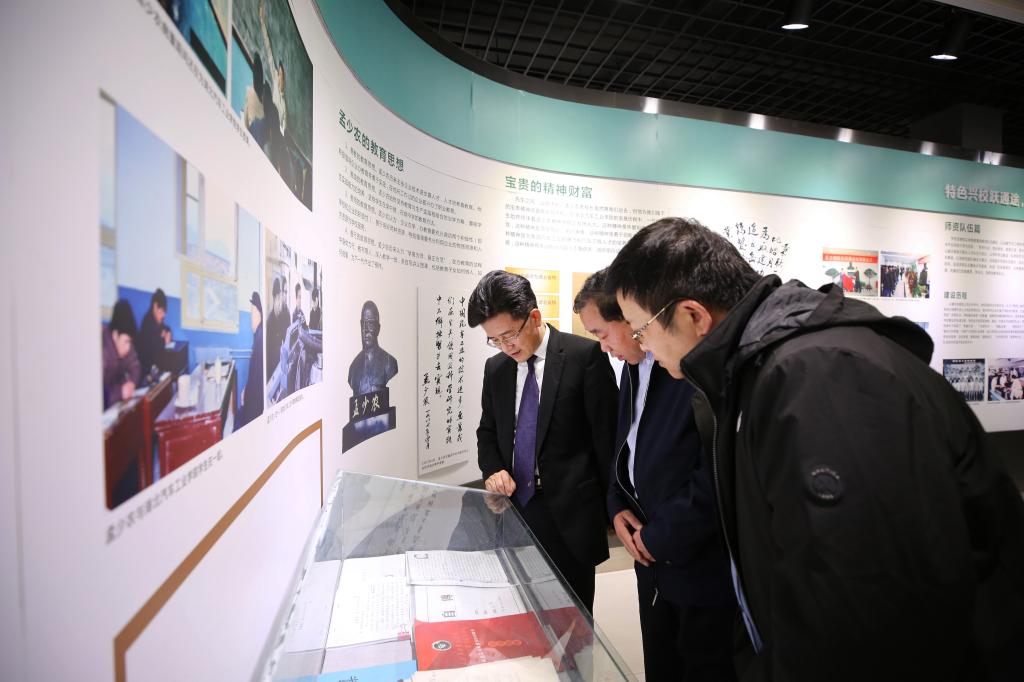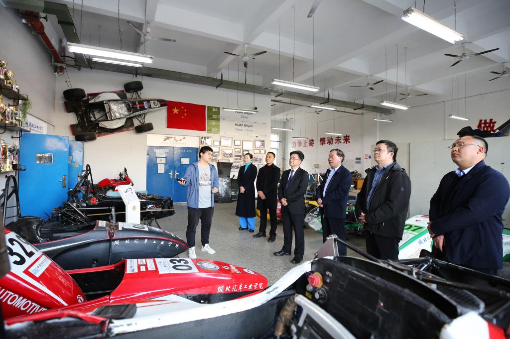 在张文学、杨立志、简炜等人的陪同下,李志旭一行参观了校史馆、HUAT车队。