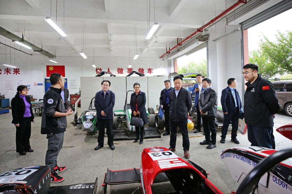 田辉玉一行先后参观了国家级制造装备数字化分中心、东风HUAT车队、汽车动力传动与电子控制湖北省重点实验室、主动安全与智能驾驶研究所、武当文化研究与传播中心,实地了解了我校的汽车特色,直观感受了我校的文化内涵。