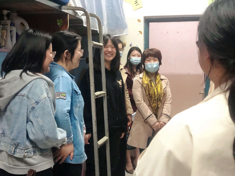 本网讯(文/李童 罗诗棋)为深入推进“学海领航”工程,加强“疫情”防控常态化下学生教育管理工作,引领学生健康成长,全面提高人才培养质量。4月27日下午,副校长张红霞带队到理学院、艺术与设计学院女生宿舍开展寝室安全和卫生大检查。