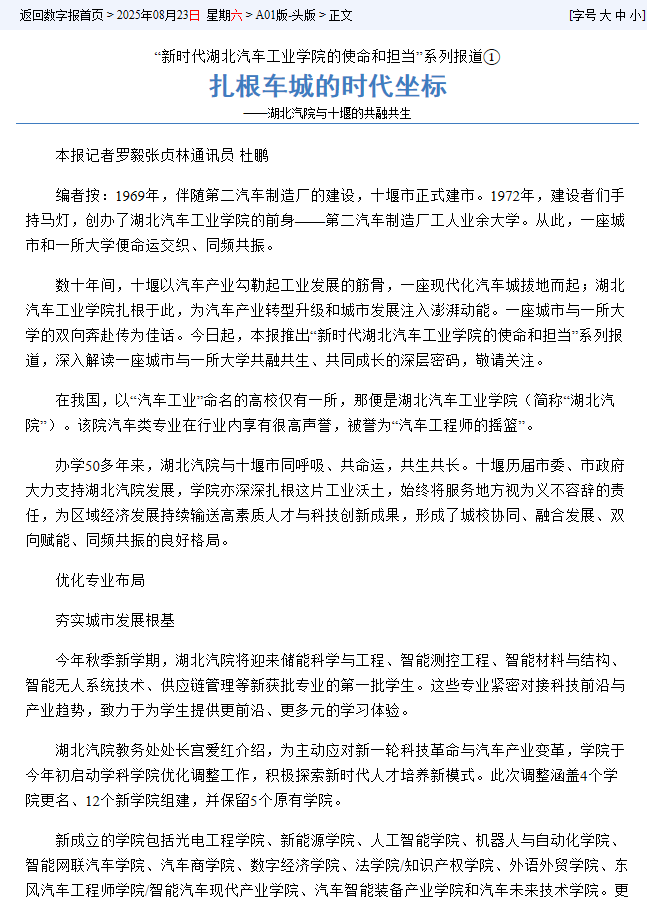 扎根车城的时代坐标——湖北汽院与十堰的共融共生